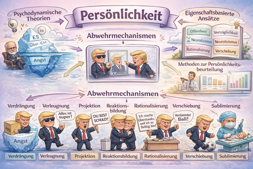 Schließlich kam noch die Tochter, Anna Freud, hinzu und verteilte unter den Blumates sieben Abwehrmechanismen der psychodymanischen Theorie.