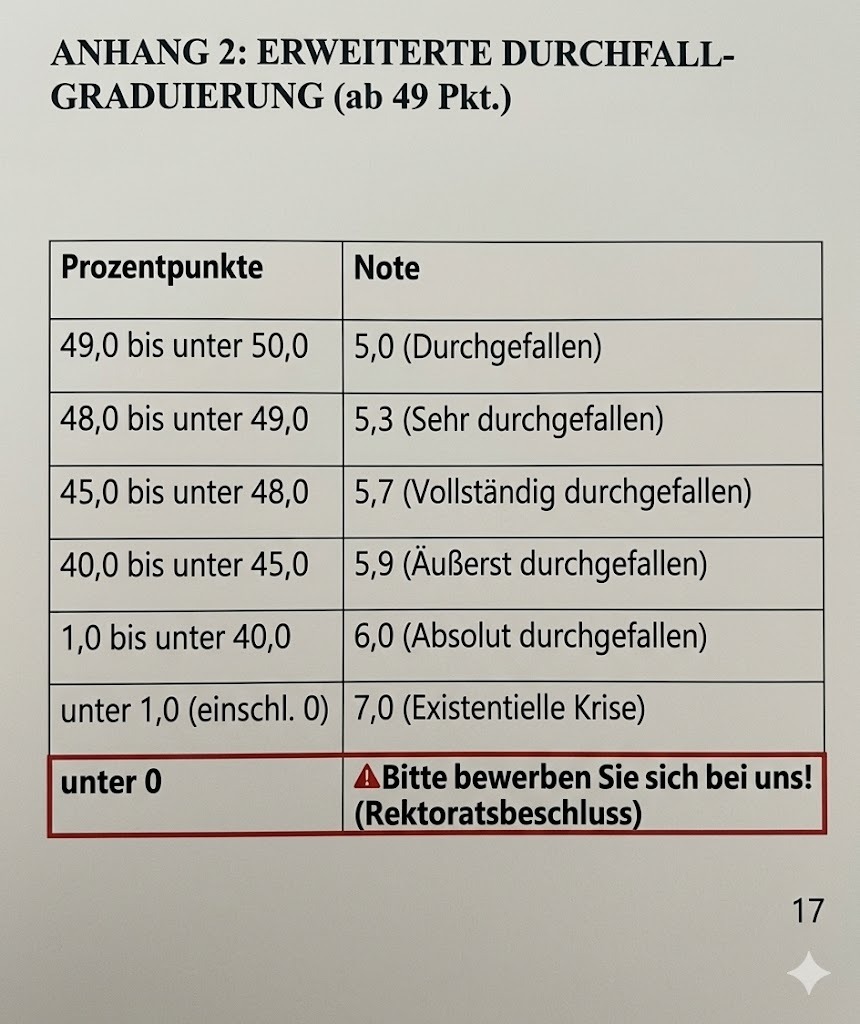 Vor einiger Zeit wurde unter Blumates über die unterschiedlichen Bestehensgrenzen bei der Führerscheinprüfung diskutiert und es wurden Auszüge aus der Prüfungsordnung gezeigt.